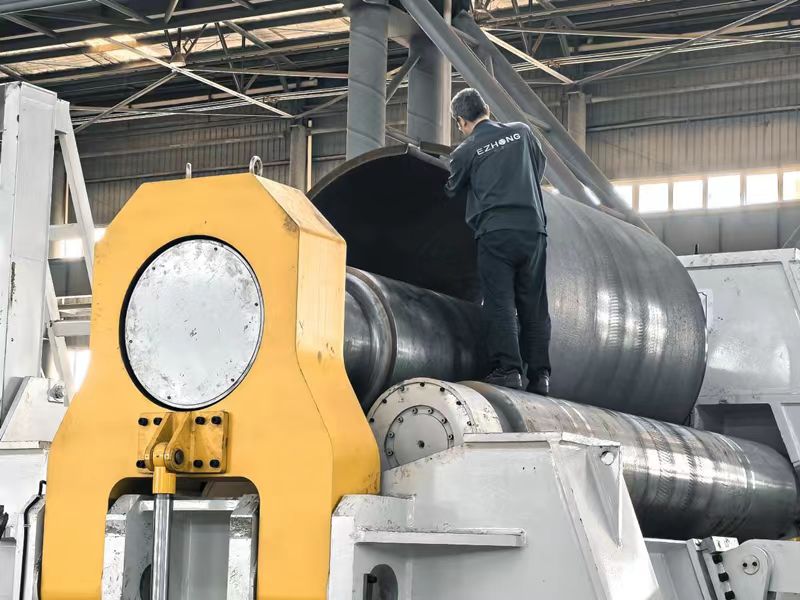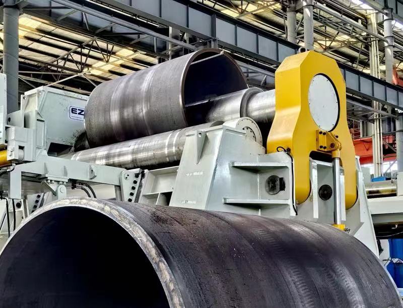 EZHONG為東歐機(jī)械公司設(shè)計(jì)制造的120*4000數(shù)控四輥卷板機(jī)在EZHONG工廠(chǎng)進(jìn)行了發(fā)貨前的測(cè)試,在沒(méi)有地基的情況下卷制了80mm*2200mm*1800直徑*355mpa工件,機(jī)器使用了最新的CNC系統(tǒng),操作者把工件相關(guān)數(shù)據(jù)輸入計(jì)算機(jī)后,機(jī)器自動(dòng)按照設(shè)計(jì)的卷制步驟將工件卷制成形,工件成型后直邊系數(shù)很短,無(wú)錯(cuò)邊現(xiàn)象,得到了客戶(hù)的贊賞。